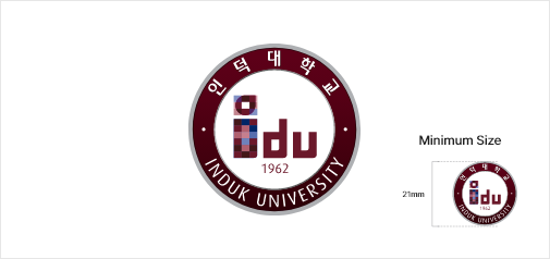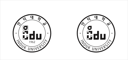 로고타입은 심벌마크와 더불어 인덕대학교의 Identity를 시각적으로 전달하는 가장 기본적인 요소이다. 인덕대학교의 국문로고타입은 심벌마크의 이미지와 잘 어울리는 서체로 개발하여 이미지를 통일화하였다. 로고타입 사용시 변형을 막기 위하여 AI파일에 수록된 원고를 정비례로 확대, 축소하여 사용하도록 한다.